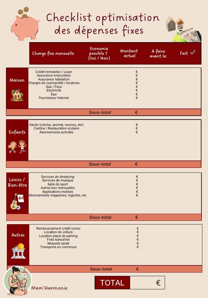 Ta check-list pour optimiser tes charges fixes